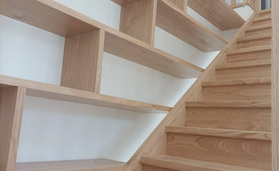 Escalier hévéa sans contre marche limons peint blanc RAL 9003