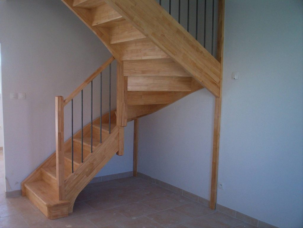 Escalier 2/4 tournants avec contremarches en hévéa