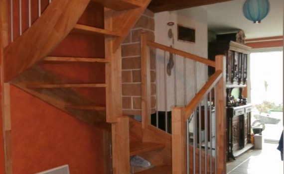 Cet escalier 2/4 tournants s'intègre parfaitement à la pièce. L'escalier 2/4-tournant ou demi-tournant forme un angle de 180°. Il peut être réalisé dans les différentes essences de bois , notamment le sapin, l'hévéa.