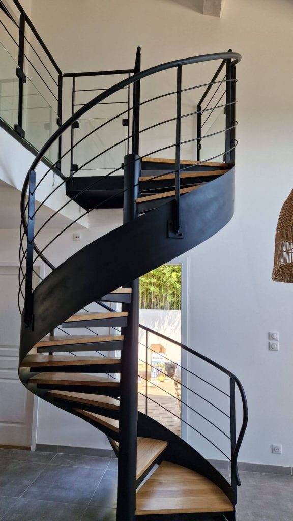 “Élevez votre espace à de nouveaux sommets avec nos escaliers personnalisés, arborant un limon central en fer ou déporté et des garde-corps sur-mesure.